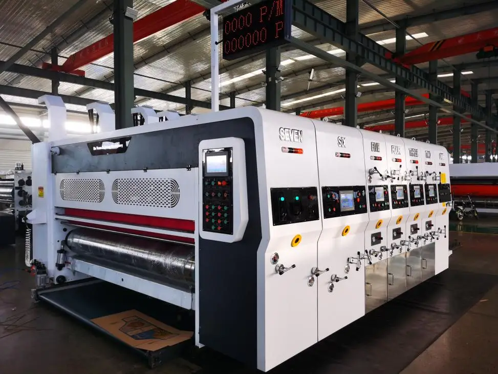 PRY-D1224 High Speed Full Automatic 4 Color Flexo Printing Slotting Die Cutting Stacking Machine