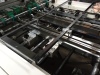 The film cutting part adopt roll-knife.It is controlled by servo motor so that we can adjust the film length without stop in the PLC.It also can adjust the place of film on the paper without stop.It has special knife to cut film for tissue box.When it is patching window with punching and scoring,the speed is around 4000 pcs for one hour,and the accuracy is ±1 mm.